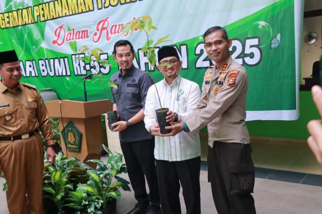 BANGKINANG KOTA, – Polres Kampar berkomitmen menjaga kelestarian lingkungan dan mendukung program penghijauan di Kabupaten Kampar. Hal ini dibuktikan dengan kehadiran Kapolres Kampar, AKBP Mihardi Mirwan, dalam acara Launching Gerakan Penanaman 1 Juta Pohon Matoa Dalam Rangka Hari Bumi Ke 55 Tahun 2025. Acara ini dilaksanakan di Kantor Kementerian Agama Bangkinang Kota, Kabupaten Kampar, pada Selasa (22/04/2025).