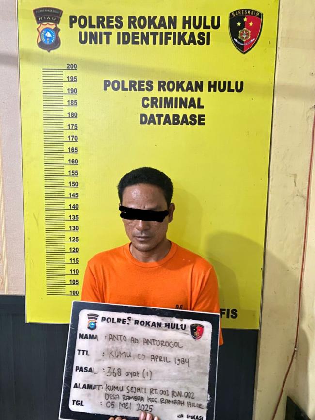 Rokan Hulu - Tim Resmob Polres Rokan Hulu mendapat informasi tentang adanya dugaan tindak pidana pemerasan yang terjadi di Kumu Sejati, Desa Rambah Kecamatan Rambah Hilir, Kabupaten Rokan Hulu Pada hari Senin tanggal 05/05/2025 lalu sekira pukul 13.00 WIB.