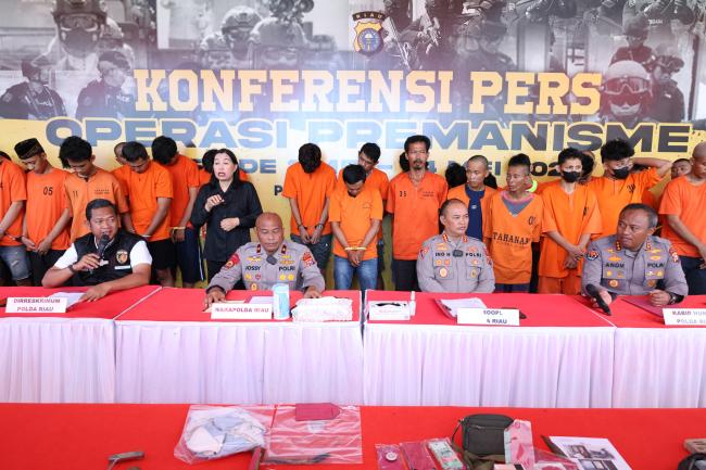 Hal itu ditegaskan Wakapolda Riau Brigjen Pol Jossy Kusumo saat pimpin konferensi pers Operasi Premanisme Lancang Kuning 2025, Kamis (15/5/2025), yang dihadiri oleh, Dir Reskrimum, Dir Resnarkoba, Kabid Humas dan Kabid Propam Polda Riau.