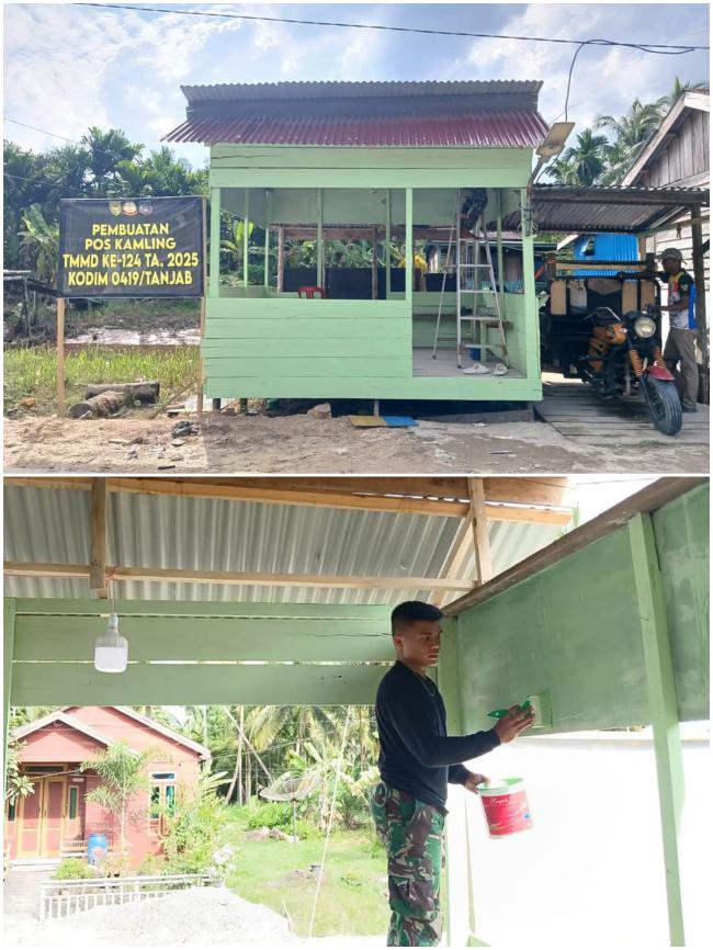 “Pengecatan dilakukan agar pos ronda ini terlihat lebih bersih dan menarik, sekaligus menambah semangat warga dalam menjaga keamanan lingkungan,” ujar Pasiter Kodim 0419/Tanjab, Kapten Inf Rudi Chandra Marpaung.