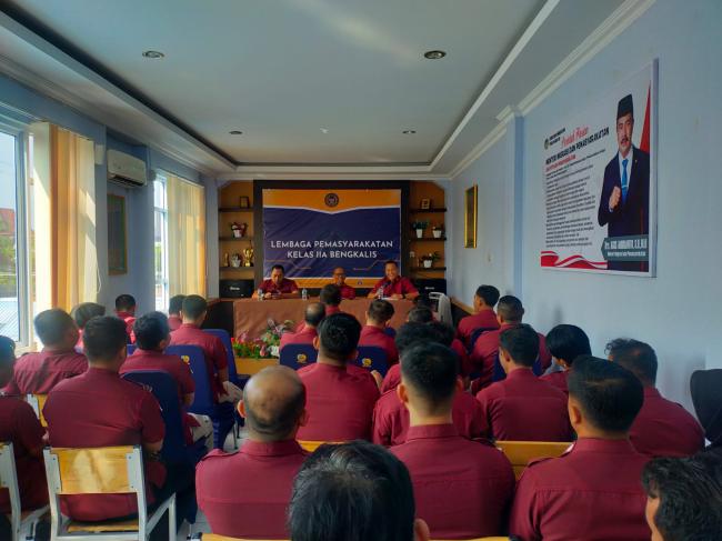 Rapat yang dipimpin langsung oleh Kepala Lapas Bengkalis, Kriston Napitupulu, tersebut diikuti oleh seluruh Pegawai Lapas Bengkalis. Dalam rapat tersebut, dibahas berbagai poin penting hasil evaluasi dari Kanwil Ditjenpas Riau, termasuk antisipasi gangguan Kamtib di Lapas/Rutan.