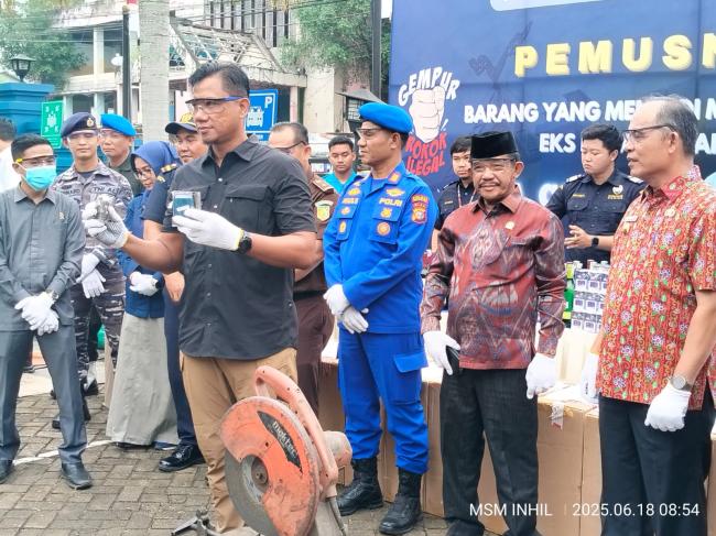 Bea Cukai Tembilahan Musnahkan Barang Ilegal Senilai Rp7,6 Miliar, Disaksikan Forkopimda Inhil
