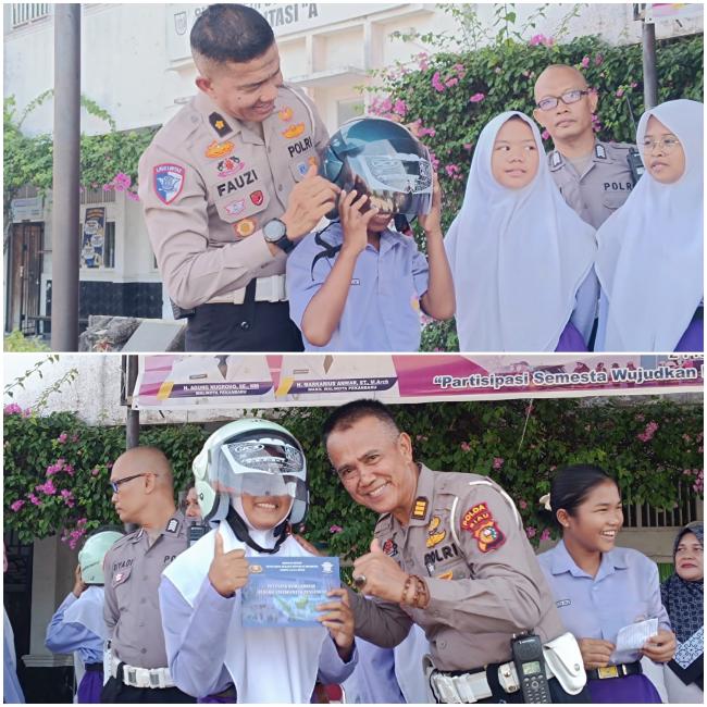 Sesi kegiatan berlangsung interaktif. Selain edukasi, juga dilakukan tanya jawab, serta pembagian helm, tumbler, dan buku panduan keselamatan lalu lintas kepada para siswa.