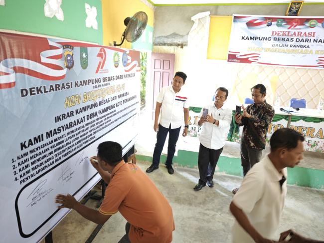 Kapoles Kampar AKBP Mihardi Mirwan melalui Kasat Resnarkoba AKP Markus T. Sinaga pada Hari Jumat (20/6/2025) menyampaikan Kegiatan ini diprakarsai oleh Kasat Resnarkoba Polres Kampar bersama para Kanit dan anggota Satresnarkoba. Deklarasi Kampung Bebas dari Narkoba ini dilaksanakan di enam desa, yakni Desa Salo (Kecamatan Salo), Desa Pulau Terap (Kecamatan Kuok), Desa Suka Mulya (Kecamatan Bangkinang), Desa Batu Belah (Kecamatan Kampar), Desa Koto Perambahan (Kecamatan Kampar), dan Desa Pulau Birandang (Kecamatan Kampar). Setiap kegiatan yang melibatkan Kepala Desa, perangkat desa, tokoh masyarakat, dan warga masyarakat desa tersebut.