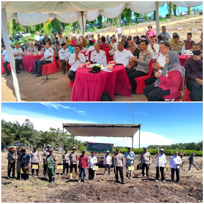Rokan Hulu - Dukung program ketahanan pangan Asta Cita Presiden RI, Kapolres Rohul AKBP Emil Eka Putra, S.I.K, M.Si beserta jajaran menggelar kegiatan penanaman jagung serentak kuartal III di areal lahan pertanian Universitas Rokania, Desa Langkitin, Kecamatan Rambah Samo. Kegiatan ini juga dirangkaikan dengan virtual zoom meeting dengan Mabes Polri dari Grobogan, Jawa Tengah. Rabu siang, 09 Juli 2025.