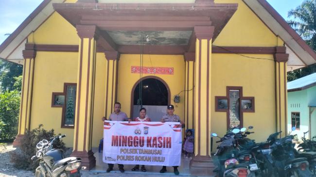 Rokan Hulu - Polsek Tambusai melaksanakan kegiatan patroli R4 dan Minggu Kasih di Gereja Katolik dan Gereja Kristen Protestan Indonesia (GKPI) di Dusun Morini, Kelurahan Tambusai Tengah, Kecamatan Tambusai. Minggu, 13 Juli 2025