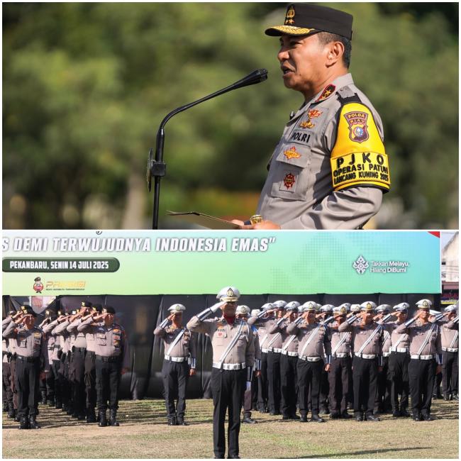 Pekanbaru – Kepolisian Daerah Riau resmi menggelar Operasi Patuh Lancang Kuning 2025 yang dibuka langsung oleh Kapolda Riau, Irjen Pol Herry Heryawan, melalui Apel Gelar Pasukan di halaman Mapolda Riau, Senin pagi (14/7/2025). Operasi ini mengusung tema “Tertib Berlalu Lintas Demi Terwujudnya Indonesia Emas” dan akan berlangsung selama 14 hari, mulai tanggal 14 hingga 27 Juli 2025, di seluruh wilayah Provinsi Riau.
