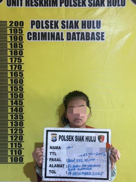 Pelaku ditangkap atas laporan dari korban Dedi (34) karena menggelapkan uang dan sepeda motor milik korban di Genio BRI LINK di Desa Baru, Kecamatan Siak Hulu pada Selasa (21/10/2025) lalu.