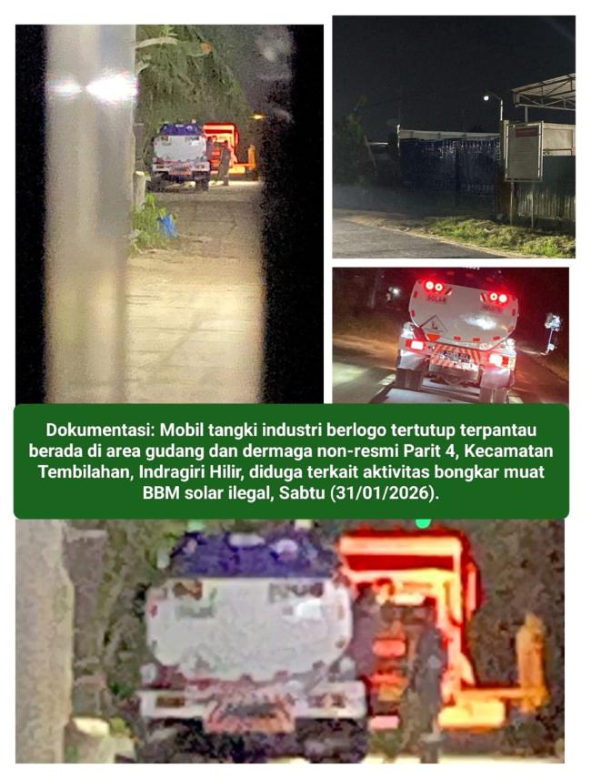 INHIL| Sabtu, 31 Januari 2026 – Gabungan tim investigasi media mengungkap adanya praktik dugaan penyelewengan dan niaga Bahan Bakar Minyak (BBM) jenis Solar berskala besar di Kabupaten Indragiri Hilir (Inhil), Riau. Aktivitas ilegal ini terindikasi beroperasi secara terorganisir di kawasan pesisir sungai Parit 4, Jalan Gerilya atau Jalan Intan Jaya, Kecamatan Tembilahan, yang merupakan salah satu titik strategis distribusi di wilayah tersebut.
