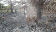 Temukan Kebakaran Lahan Saat Patroli, Bhabinkamtibmas dan MPA Karya Indah Lakukan Pemadaman