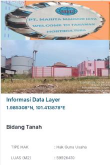 Pulau Rupat Riau - Perusahaan PT. Marita Makmur Jaya yang memiliki Luas HGU ( Hak Guna Usaha), LUAS