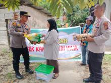 Jumat Curhat, Kapolsek Kampar Kiri Hilir Bagi-bagi Sembako Bagi Warga Kurang Mampu