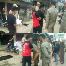 Tembilahan – Suasana di depan Plaza Gemilang yang sudah lama terbengkalai, tiba-tiba tegang -