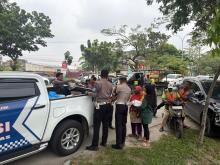Gerak Cepat Tim Raicet Polres Pelalawan Atasi Kemacetan Akibat Laka Lantas di Jalintim KM 107