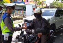 Sat Lantas Pekanbaru Bagikan Stiker Keselamatan Kepada Pengguna Jalan