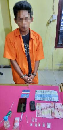 TAMBANG - Seorang tersangka pengedar narkotika jenis shabu ditangkap Unit Reskrim Polsek Tambang, -