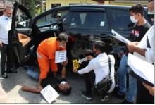 KAMPAR - Tim penyidik Polres Kampar dan Polsek Tapung gelar rekonstruksi perkara tindak pidana -