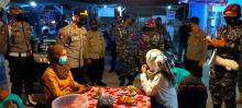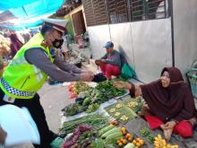 Kasat Lantas Polres Kampar Beri Himbauan Protkes dan Bagi Masker di Pasar Air Tiris