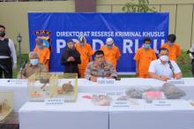PEKANBARU - Direktorat Reserse Kriminal Khusus Polda Riau membongkar kejahatan Perdagangan Ilegal -