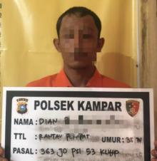 KAMPAR - Unit Reskrim Polsek Kampar amankan seorang pria yang tertangkap tangan melakukan pencurian -