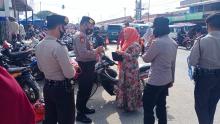 Kasat Sabhara Bersama Kapolsek Bangkinang Barat Bagikan Masker di Pasar Kuok Kampar