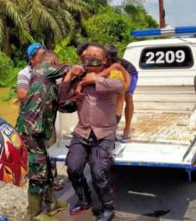 Mengharukan, Anggota Bhabinkamtibmas Polsek Seberida ini Evakuasi Warga Lumpuh Saat Banjir