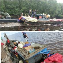 Bengkalis, membacabangsa.co.id - Sebuah Pompong yang sarat bermuatan ratusan karung -