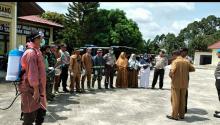 Pemdes Sungai Pinang dan Polsek Tambang Lakukan Penyemprotan Disinfektan di Area Publik