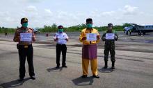 Tim Gabungan Semprot Desinfektan di Area Bandara Tuanku Tambusai Rohul