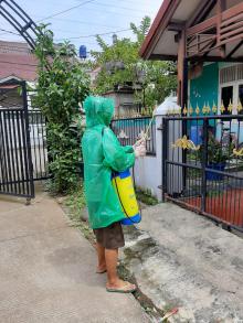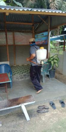 Cegah Covid-19, Ketua RT 05 Desa Adi Jaya Lakukan Penyemprotan Disinfektan