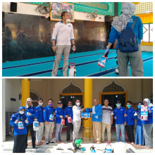 Demokrat Bengkalis Lakukan Penyemprotan Desinfektan di Masjid dan Bagikan Handsanitizer ke Pedagang