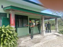 Cegah Corona, Danramil 14/Kepenuhan Kodim 0313/KPR Lakukan Penyemprotan Disinfektan di Makoramil