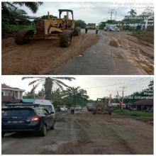 Meminimalisir terjadinya kecelakaan, Polsek Tandun dan PUPR timbun jalan rusak dan berlubang
