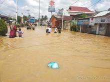 Akibat intensitas curah hujan yang tinggi, sejumlah wilayah di Rokan Hulu di landa banjir