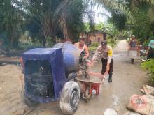 Rohul Polsek Tambusai bersama masyarakat melaksanakan kegiatan gotong royong membantu pembangunan -