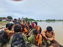 Sinergitas TNI-POLRI mengarungi Sungai Reteh menggunakan sampan