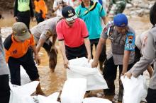 Soliditas Polsek dan Koramil Tlogowungu atasi air meluap di Jalan