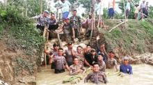 Koramil 04/Kayen bersama Polsek Kayen dan warga bersinergi melaksanakan pembersihan sungai