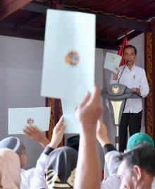 Membacabangsa.co.id Presiden Joko Widodo menyerahkan sertifikat hak atas tanah untuk masyarakat di -