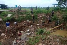 Kapolres Pati kerja bhakti perbaiki tanggul Sungai jebol di Desa Bogotanjung, Kec. Gabus, Pati